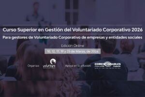 Los días 10, 12, 17, 19 y 25 de marzo de 2026, de 16:00 a 18:00h (GMT+1), celebramos una nueva edición de nuestra formación insignia, diseñada para quienes quieren gestionar programas de voluntariado corporativo de manera estratégica, rigurosa y sostenible.
