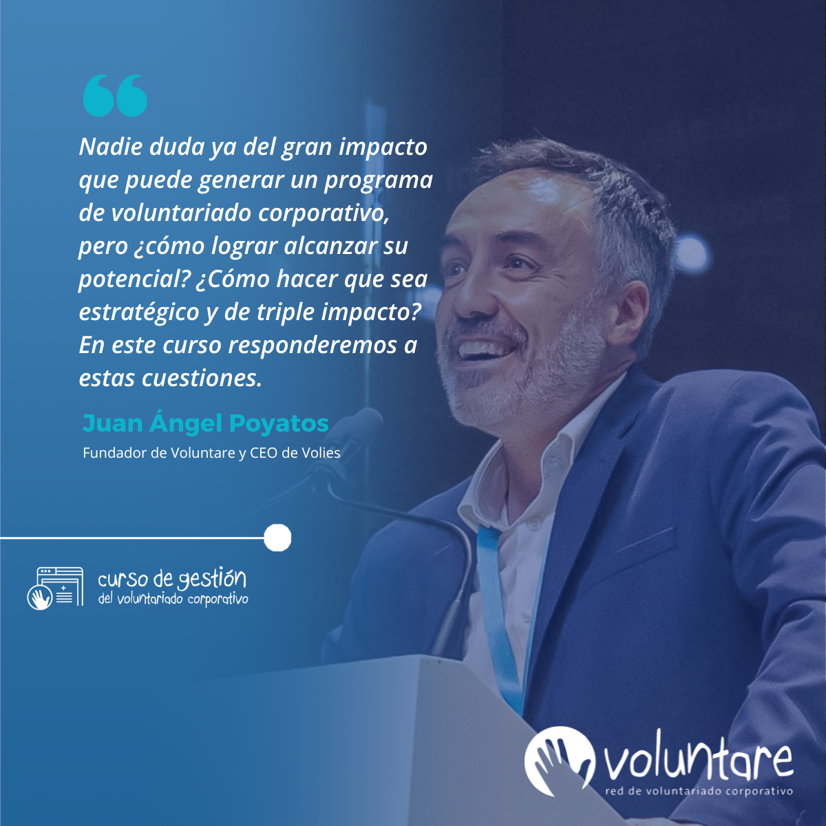 ✅Introducción al voluntariado corporativo estratégico. Juan Ángel Poyatos, fundador de Voluntare y CEO de Volies, fue el encargado de impartir esta sesión inaugural en la que se profundizó en el enfoque de Experiencia Social Voluntare y en cómo las empresas pueden integrar el voluntariado dentro de sus estrategias de impacto social.