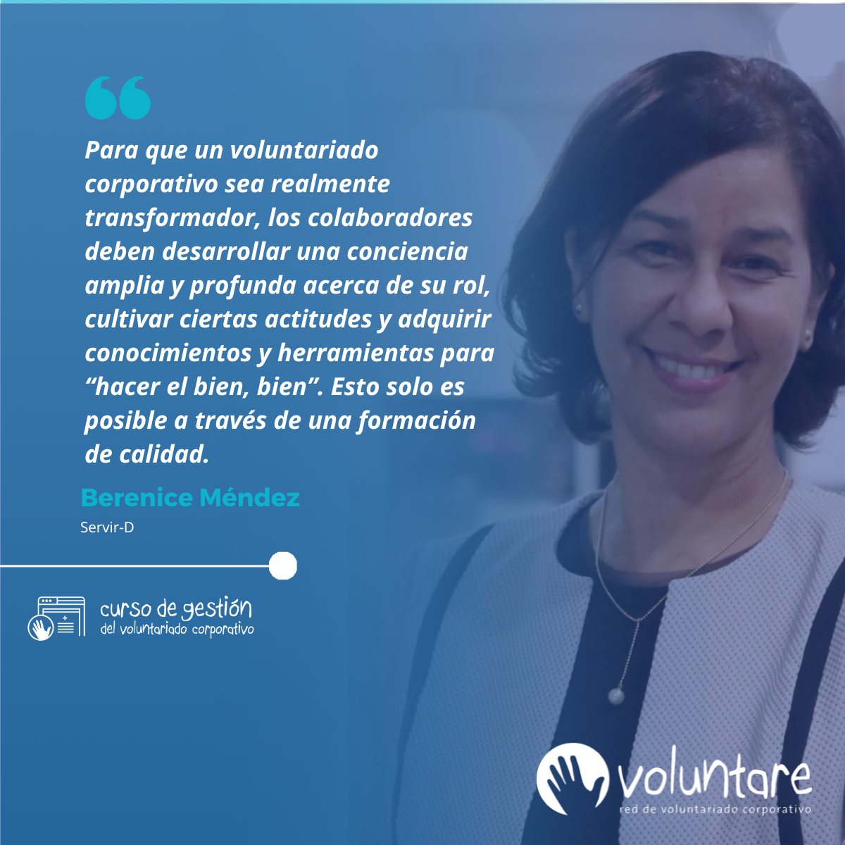 - Berenice Méndez, de SERVIR-D (República Dominicana), abordó un elemento esencial para el éxito de los programas: la formación de las personas voluntarias de empresa.