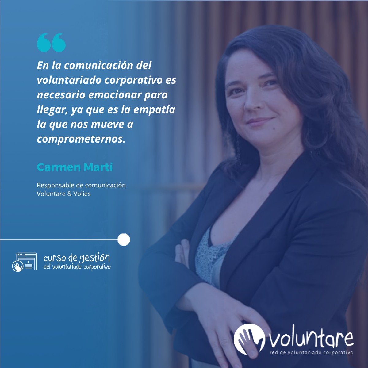 ✅ Movilización de personas voluntarias. En esta tercera sesión Carmen Martí, responsable de comunicación de Voluntare & Volies, abordó la cuestión de cómo «comunicar para enamorar». A través de un recorrido visual y práctico, el alumnado descubrió cómo las estrategias de comunicación, junto a acciones de reconocimiento y formación, pueden convertirse en grandes aliadas para mantener el compromiso de las personas voluntarias y sumar a más colaboradores en cada acción.