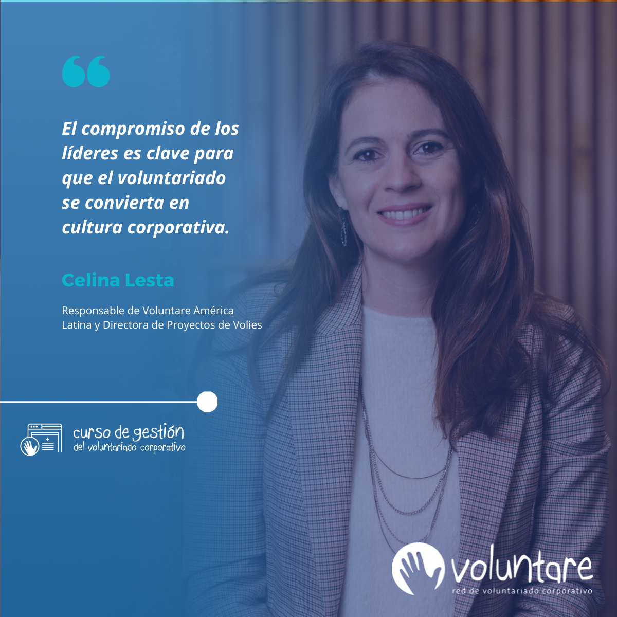 ✅ Liderazgo en el voluntariado. En esta cuarta sesión Celina Lesta, Directora de Proyectos de Volies y responsable de Voluntare América Latina, abordó el papel del liderazgo dentro de los programas de voluntariado corporativo, analizando cómo impulsar tanto el liderazgo desde la propia organización como el de embajadores y líderes voluntarios.