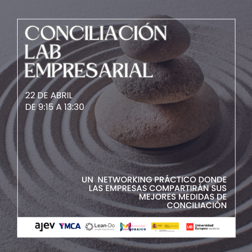 El 22 de abril se celebrará una jornada práctica de networking sobre conciliación organizada junto a AJEV, la Universidad Europea de Valencia, LEAN-DO y YMCA. Será un espacio participativo donde las empresas compartirán medidas reales de conciliación que ya les están funcionando.